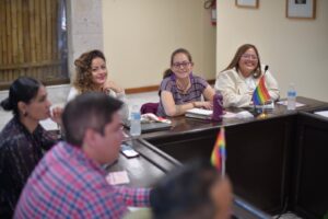 Xalapa, Ver., 18 de julio de 2025.- La presidenta de la Mesa Directiva de la LXVII Legislatura, diputada Tanya Carola Viveros Cházaro, y la presidenta de la Comisión Permanente para la Igualdad de Género, diputada Astrid Sánchez Moguel, realizaron una mesa de trabajo con especialistas en el tema para la construcción del proyecto de ley que reforma diversos artículos del Código Penal denominado Violencia por Prejuicio a la Población LGBTTTIQAP+.