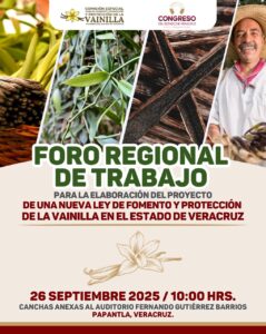 Xalapa, Ver., 21 de septiembre de 2025.- Con el objetivo de elaborar un nuevo proyecto de Ley de Fomento y Protección de la Vainilla para el estado de Veracruz, la diputada Miriam García Guzmán, presidenta de la Comisión Especial para el Fomento, Promoción y Protección de la Vainilla de la LXVII Legislatura, dio a conocer la realización de tres Foros Regionales que permitirán recopilar información para la integración de la respectiva propuesta.