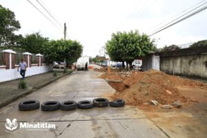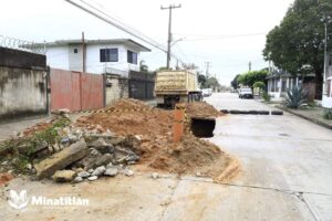 .- Tras concluir la reparación de drenaje por parte de DAGA, personal de obras públicas realiza trabajos de reparación de losa en dicha arteria.