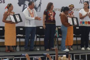 La jornada se llevó a cabo en el campo deportivo de Los Tigres, donde se congregaron más de 5,000 personas provenientes de diversas comunidades originarias y afromexicanas. En ese espacio, la presidenta entregó de propia mano los apoyos a los comités comunitarios de Zaragoza y Acayucan, elegidos previamente en asambleas públicas por sus pueblos.