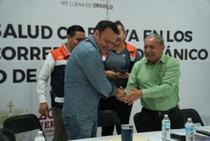 El presidente municipal, Ponciano Vázquez Parissi dirigió las palabras de bienvenida a los representantes de los Ayuntamientos que asistieron a esta reunión, donde se continuó con las capacitaciones y firmas de acuerdo con personal de la Dirección Contra Riesgos Sanitarios.