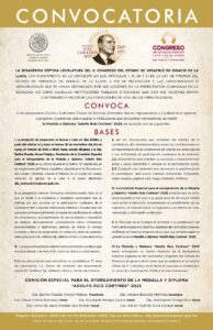 La convocatoria, dirigida a las asociaciones civiles y culturales, clubes de servicio, sindicatos, barras, agrupaciones y ciudadanía en general, indica que la recepción de propuestas se realizará del 14 al 28 de noviembre del año en curso, de 09:00 a 18:00 horas, en la oficina de la diputada Bertha Rosalía Ahued Malpica ubicada en el Palacio Legislativo o al correo electrónico: dip_bahued@legisver.gob.mx.
