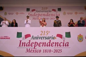 Xalapa, Ver., 16 de septiembre de 2025.- A invitación de la gobernadora del estado de Veracruz, ingeniera Rocío Nahle García, el presidente de la Junta de Coordinación Política (Jucopo), diputado Esteban Bautista Hernández, y la presidenta de la Mesa Directiva, legisladora Naomi Edith Gómez Santos, participaron en las actividades patrias con motivo del 215 Aniversario del inicio de la independencia de México.